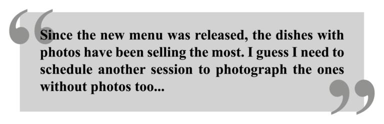 Have you seen the surveys various companies conducted on the impact of food photos? Grubhub data shows that restaurants with food photos receive up to 30% more orders than those without them. A study by Limetray also shows that menus with images increase conversion rates by over 25%.